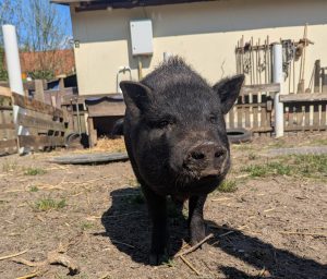 An Schweinen und auch an unseren Hühnern ist so toll zu zeigen, das Lernen über positiver Verstärkung super funktioniert, denn Schweine lassen sich nicht zu irgendetwas zwingen, sehr spannend, finde ich!